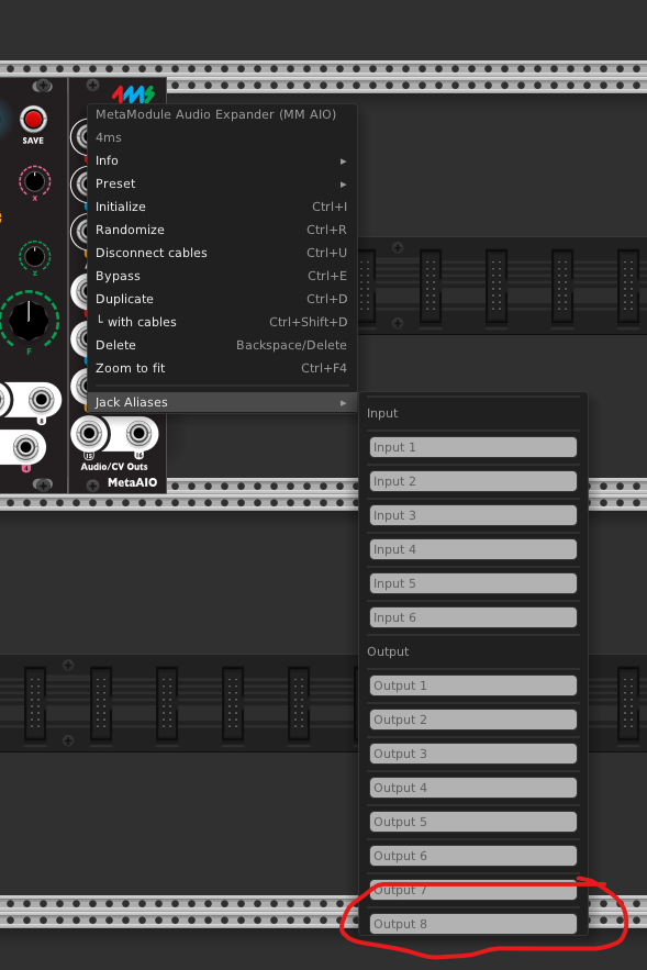 Additional Recommendation: Prior to entering text in these jack alias fields on the virtual CV expander module they show as inputs 1 to 6 and outputs 1 to 1 to 8 which is not what their actual numbers are on the hardware expander. I believe it would make sense to name the jack inputs/outputs on the virtual CV Expander as they appears on the hardware expander ( inputs 7 to 12 and outputs 9 to 16) .