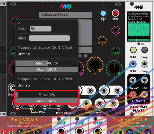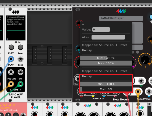 playing with this some more, noticing some discrepancies. in my original patch, the mapping offsets for certain knobs on the hub are set to 100%min, 0%max, but when converting the yml->vcv, those are getting flipped: