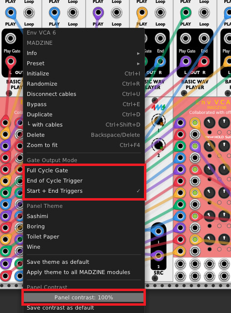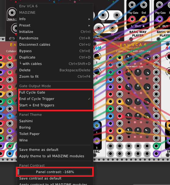 i’m trying this with the madzine env vca 6 module, and it still doesn’t seem to be catching the proper options (namely the gate output mode section):