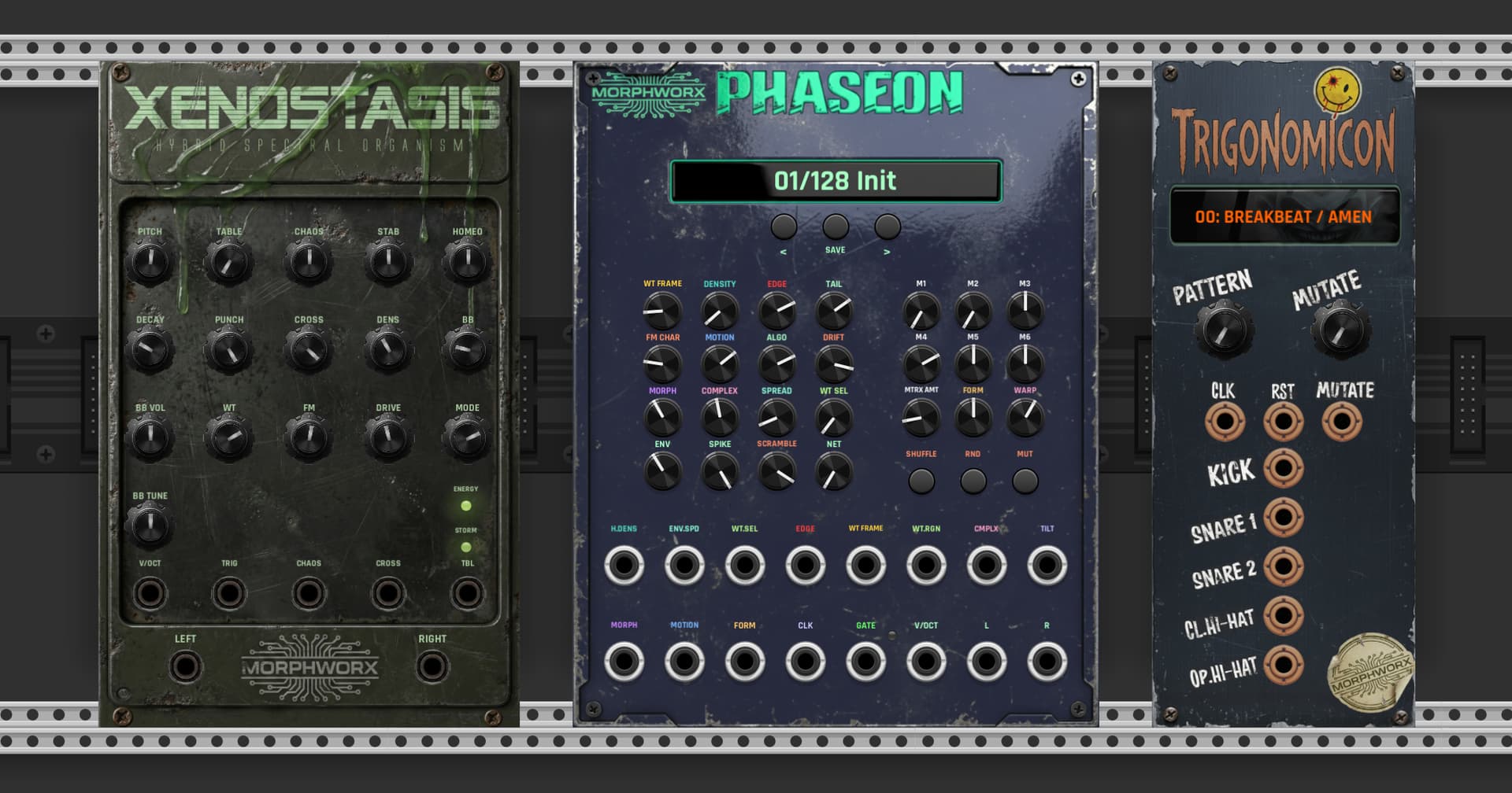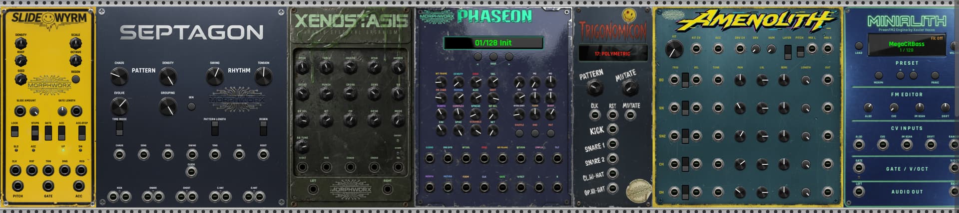 Trigonomicon - a dream module of mine, no clue why no one has made it, it’s what got me into doing these modules. It’s a drum pattern generator with 60 (so far) built in patterns for jungle, breakcore, DnB, Drillcore, IDM etc. 32 steps. It has a mutate function for endless variations of these patterns. It’s awesome and i love it.